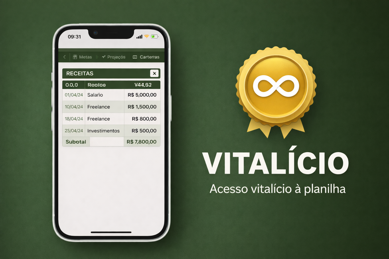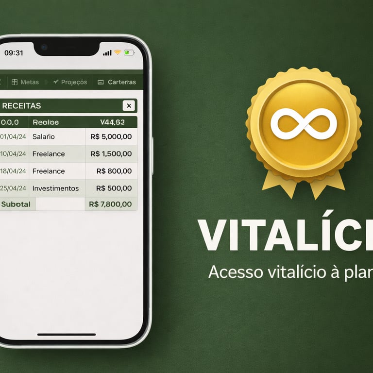 Você paga uma única vez e tem acesso para sempre, podendo usar a planilha todos os meses para organizar sua vida financeira sem precisar pagar novamente.