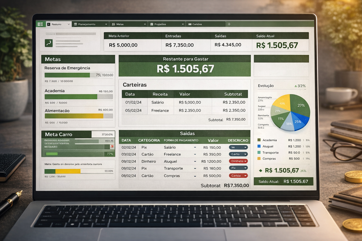 ✅ Painel com “Restante para Gastar” automático R$ 77